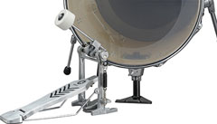 The wide legs ensure the stability of the bass drum and feature rough surfaces to allow the pedal to be fastened firmly even when using metal hoops, and giving the kit a level of power that belies its small diameter.